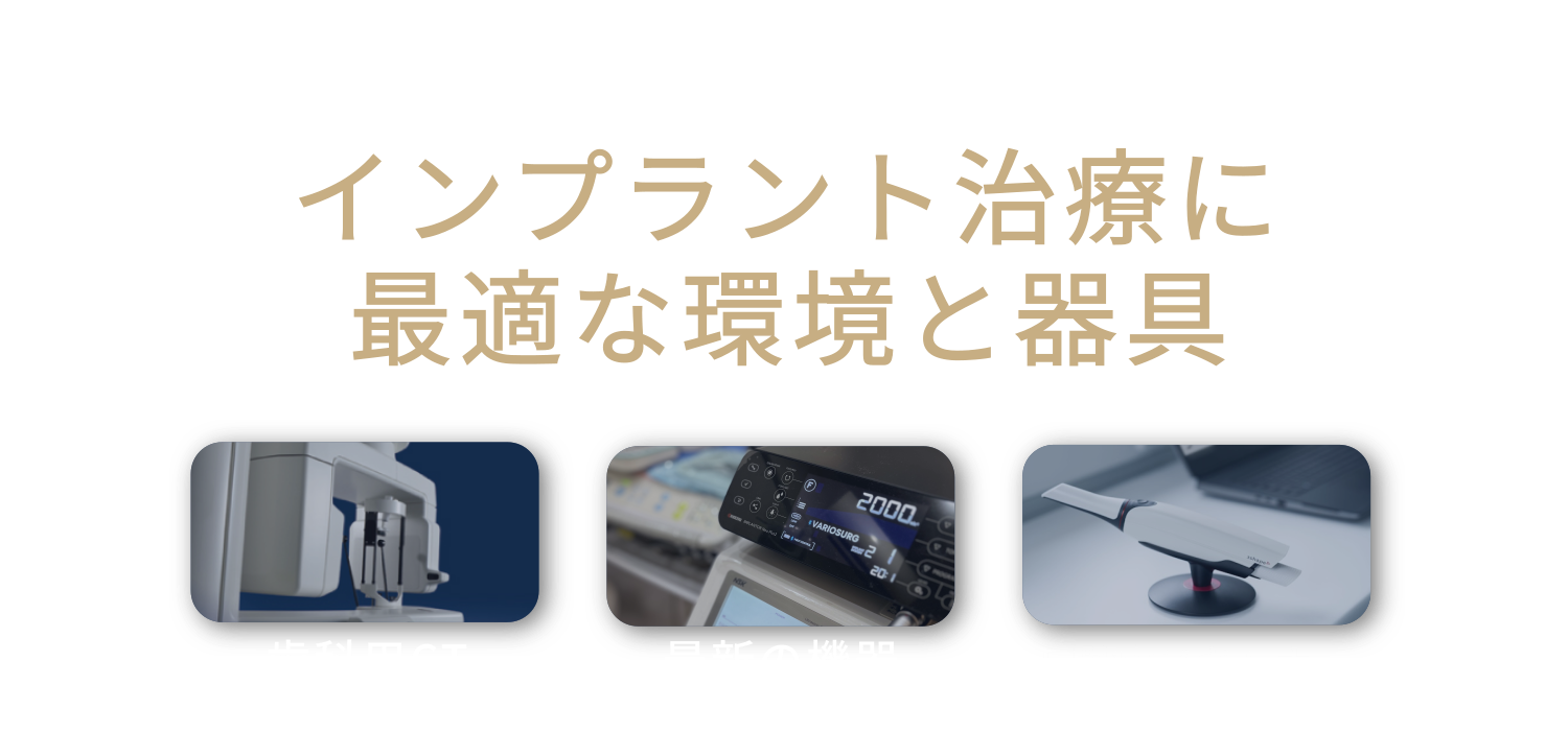 日々進化するインプラント業界ですが、当院では常に最新の技術を学び、環境を整えるため器具も最新のものを使用しております。最新技術の器具を使用することで高品質かつ、安全な治療を実現しております。詳しくは当院の設備情報ページよりご確認ください。